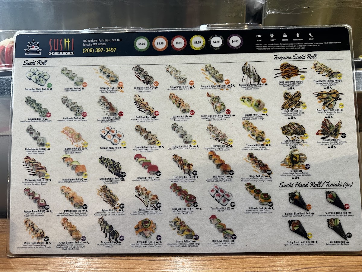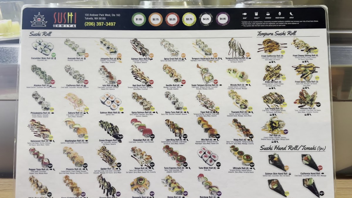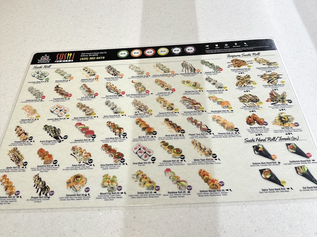 From a reviewer’s perspective, the menu at Sushi Omiya Factoria offers a well-rounded selection that covers everything from classic sushi to comforting hot dishes and desserts, making it easy to find something for every taste. The Nigiri / Sushi (2pc) options like Eel (Unagi), Seared Shrimp, Egg (Tamago), and the premium A5 Seared Wagyu 1 Pc stand out for variety, while appetizers such as Sesame Balls (3), Tempura Shrimp (2), Baked Mussels (2), and Chicken Karaage provide great starters. Fresh options like Tuna Sashimi, Yellowtail Sashimi, and rolls such as Rainbow Roll (4), Jalapeno Roll (4), and Seattle Roll (4) make the sushi selection appealing, and heartier choices like Tonkotsu Chashu Udon Soup and Beef Udon Soup add balance to the menu. To finish, desserts like Mochi Ice Cream (2), Tiramisu, and Taiyaki offer a sweet ending, rounding out a menu that feels both varied and satisfying.